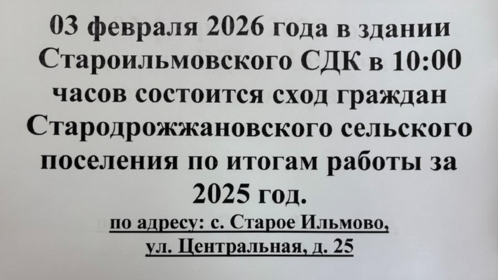 03 февраля 2026 года в с. Старое Ильмово состоится сход граждан.